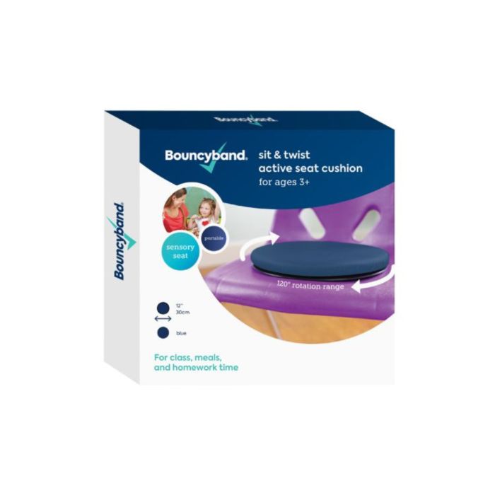 The Sit & Twist Active Seating Cushion helps children stay focused and relaxed. The patent-pending 120-degree rotating disc lets children quietly spin and shift positions, giving them an outlet for restless energy during class, homework, or meals. This movement-friendly cushion supports sensory input, making it a great tool for kids with ADD, ADHD, or autism. With a comfy, easy-to-clean vinyl seat and a non-skid base, it stays secure while promoting better concentration and calm.