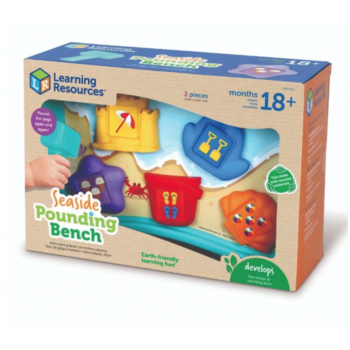 Turn a trip to the seaside into a fun fine motor adventure with the Seaside Pounding Bench where little hands build strength, dexterity and hand-eye coordination as they play with this colourful, beach-themed fine motor skills toy.