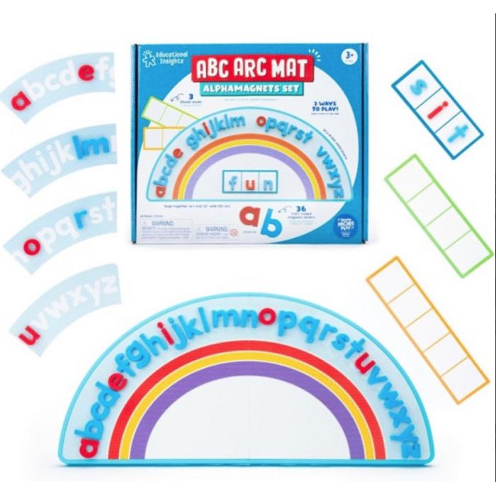 Boost your child's literacy journey with the ABC Arc Mat AlphaMagnets Set. This engaging educational tool uses the common alphabet arc strategy to foster recognition, order, phonics, and spelling. The tactile AlphaMagnets are perfect for developing fine motor skills as children play. The set includes a magnetic alphabet arc mat with a dry-erase board, 36 color-coded AlphaMagnets, a magnetic alphabet strip, Elkonin boxes, and a teaching guide. Ideal for interactive learning at home or in the classroom.