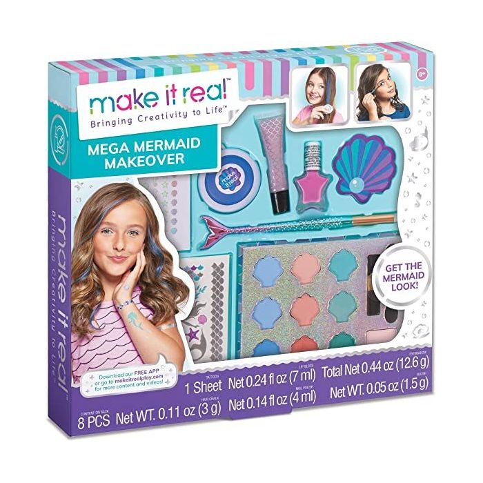 MERMAID MAKEUP SET FOR GIRLS. This tween mermaid themed cosmetic set will unleash your daughter’s creativity as a perfect introduction to makeup styling. Includes mermaid temporary tattoo stickers