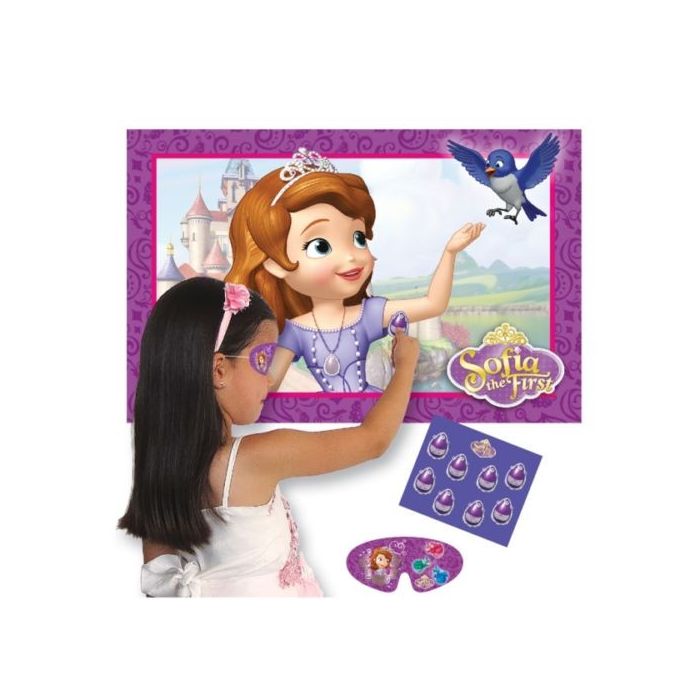 No birthday party would be complete without this party game. Stick the amulet on {rincess Sofia. Game includes: