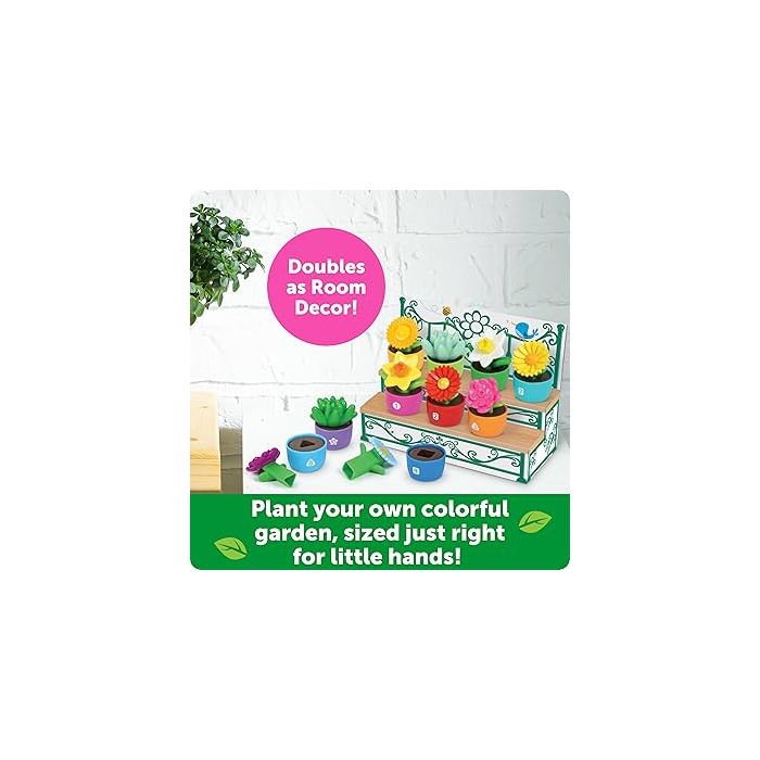 Watch your fine motor skills and hand-eye coordination blossom as you match 10 bright plants by shape to their corresponding flower pots. With 5 unique shape fittings and a colorful mix of flowers and succulents, this bright and playful garden is great for hands-on learning and building color and counting skills! Kids also build a new understanding of sustainability with components made from recycled plastic and a guide filled with eco-conscious facts.